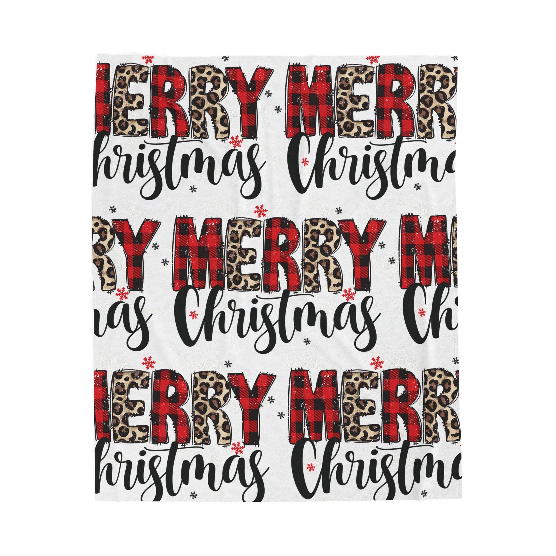 Velveteen Plush Blanket - 'Merry Christmas' Buffalo Plaid & Leopard Holiday Throw